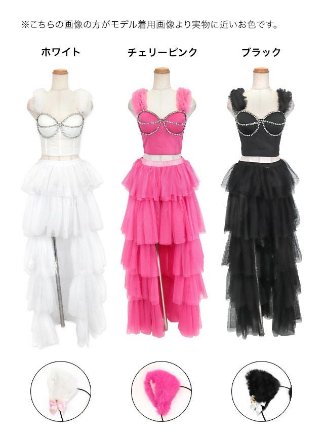 5. [セール]コスプレ ビジュー付きへそ出しビスチェセットアップフィッシュテールフレアスカート猫アニマル [3点セット] (トップス/スカート/カチューシャ)