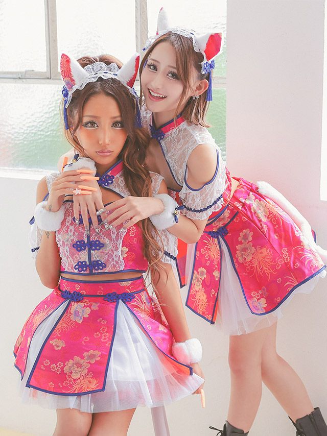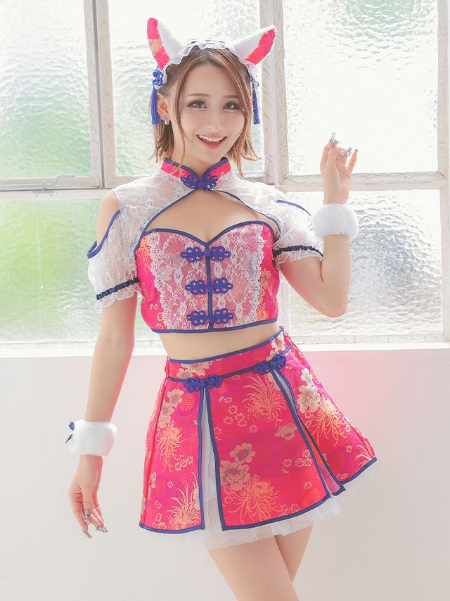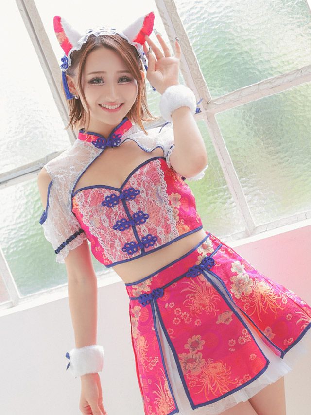 コスプレ ガーリーチャイナへそ出しバストカットシフォンフレアスカート猫アニマル