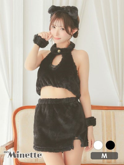 あざと可愛いふわもこキャット♡ [セール] コスプレ ふわもこ クロスデザイン フェイクファー セクシー へそ出し アニマル [5点セット] (トップス/スカート/カチューシャ/リストバンド/レッグウォーマー)
