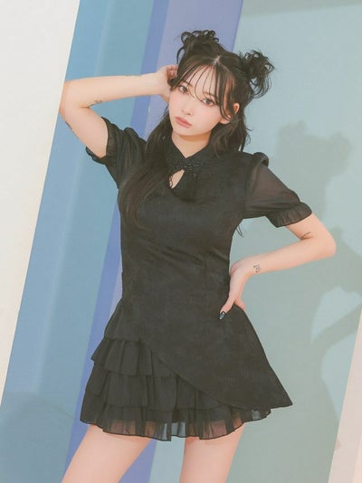 4. [セール]コスプレ ガーリーペアフリルフレアスカートワンカラーチャイナドレス [2点セット] (トップス/スカート)