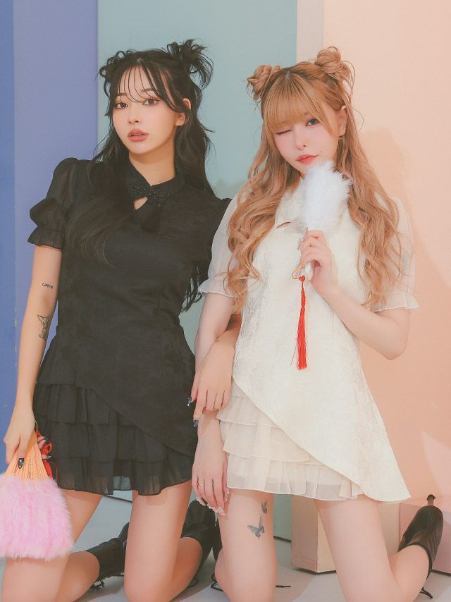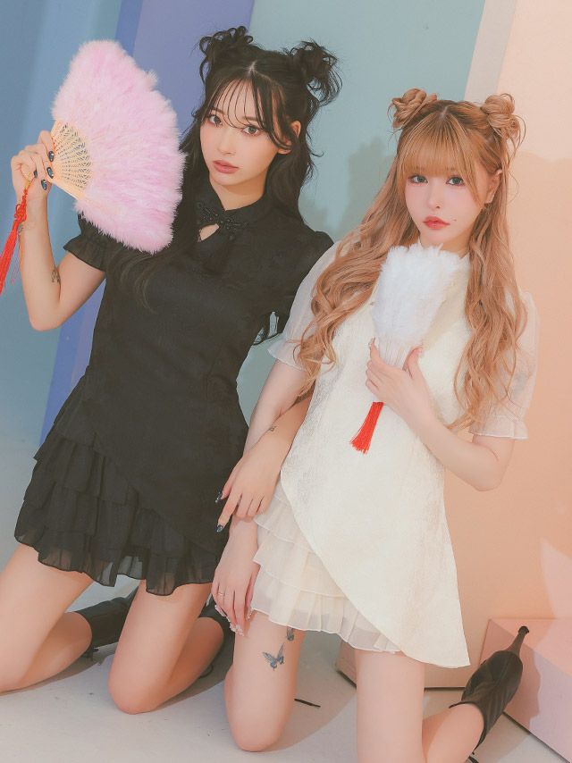 チャイナ仕様のティアードスカートが