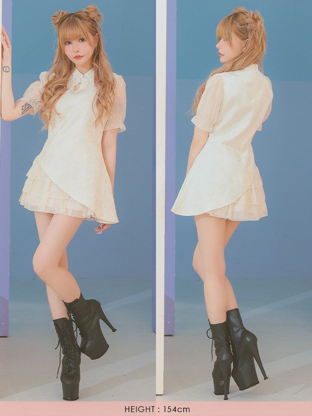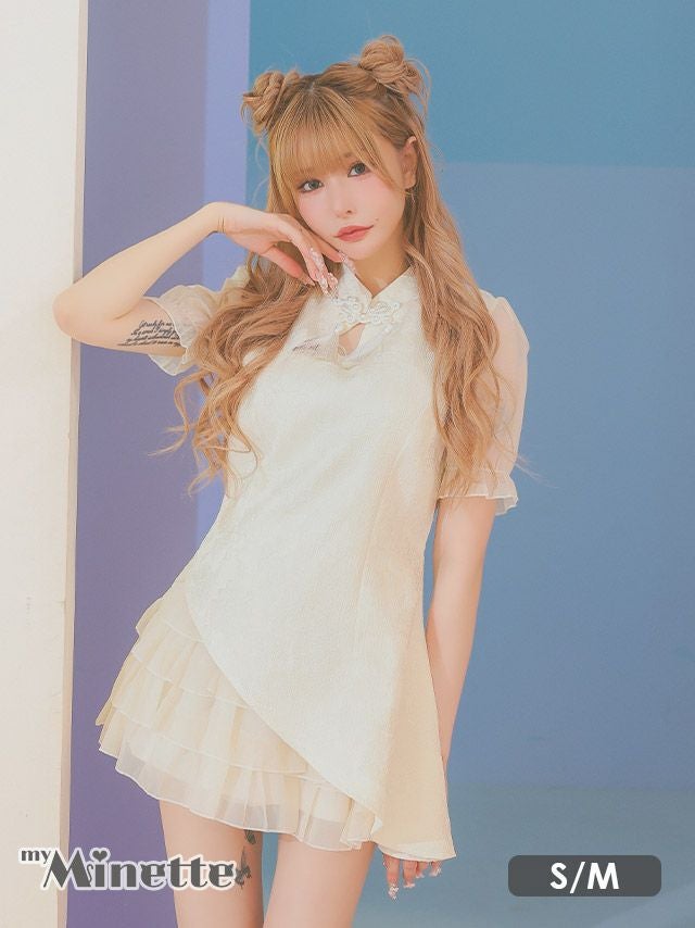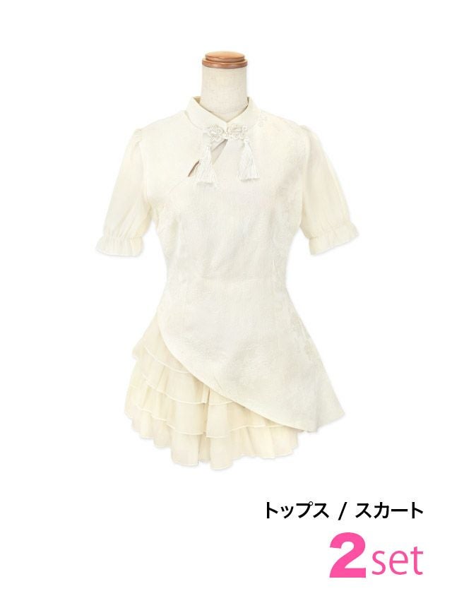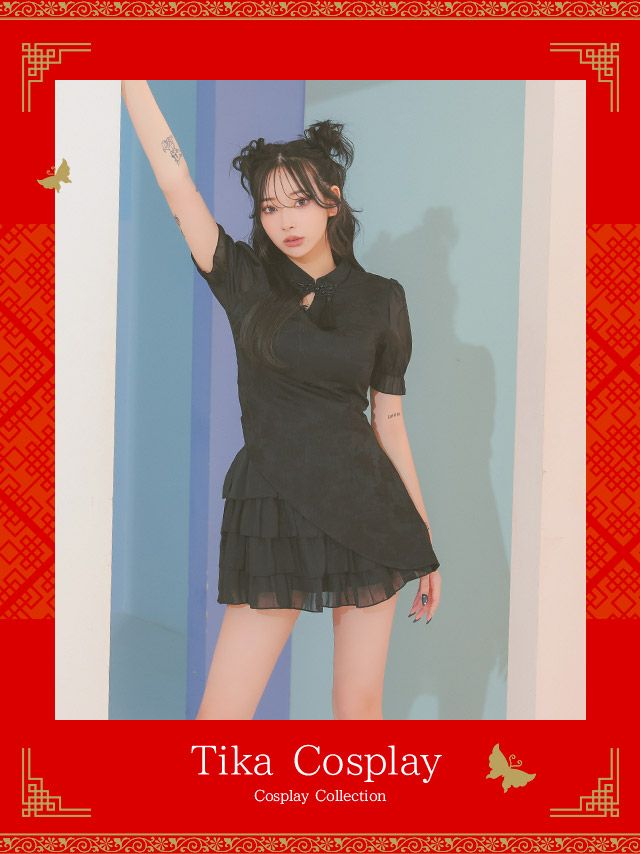 4. [セール]コスプレ ワンカラーガーリーフレアフリルスカートチャイナドレス [2点セット] (トップス/スカート)