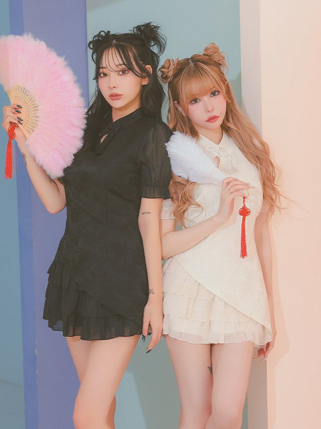 コスプレ ワンカラーガーリーフレアフリルスカートチャイナドレス