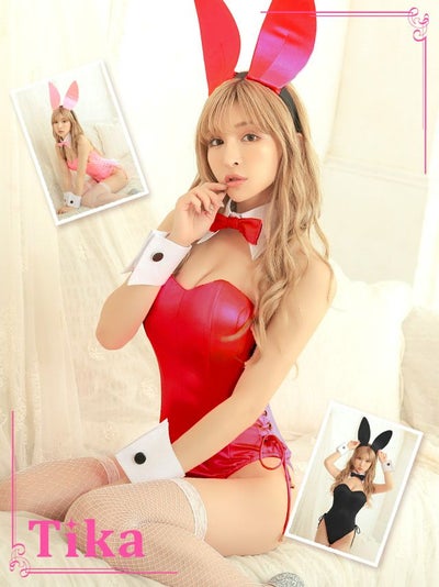4. [セール]コスプレ セクシー谷間見せサイドリボンハイレグバニー [5点セット] (オールインワン/付け襟/カチューシャ/カフス/しっぽ)