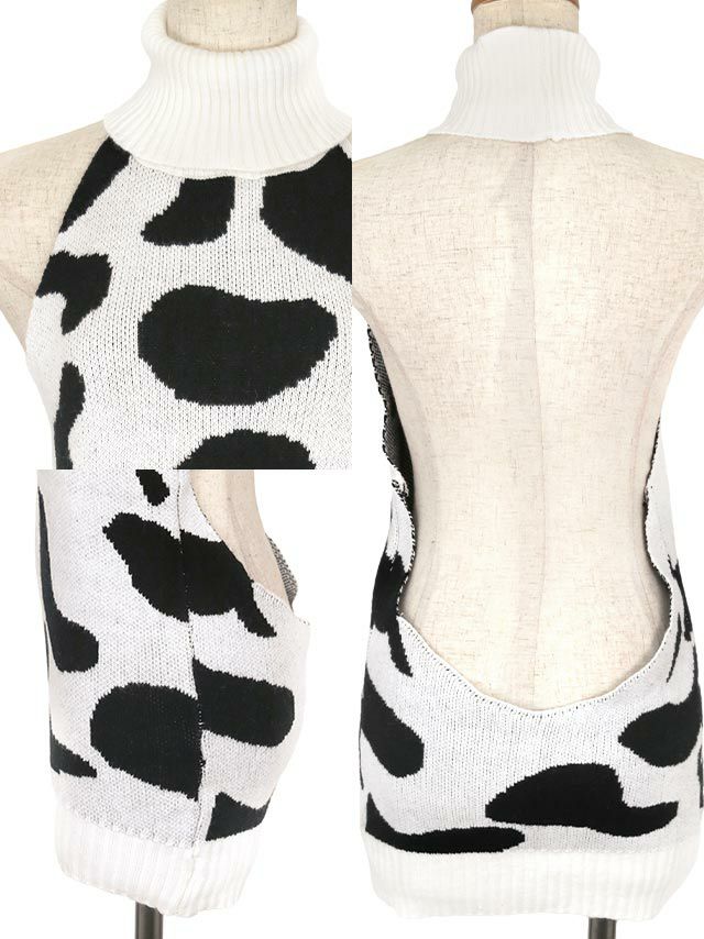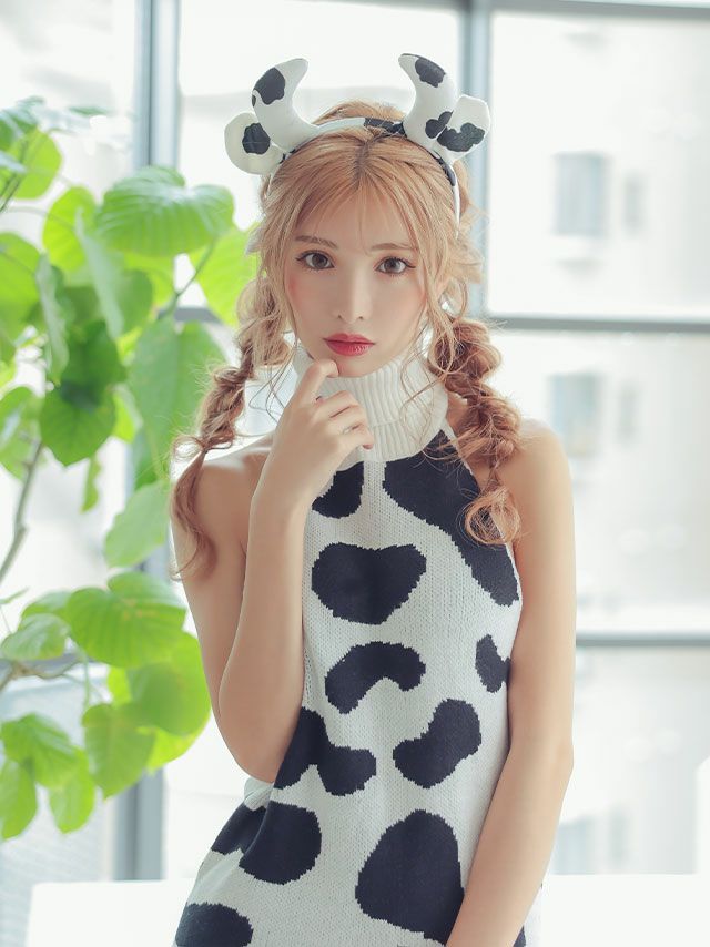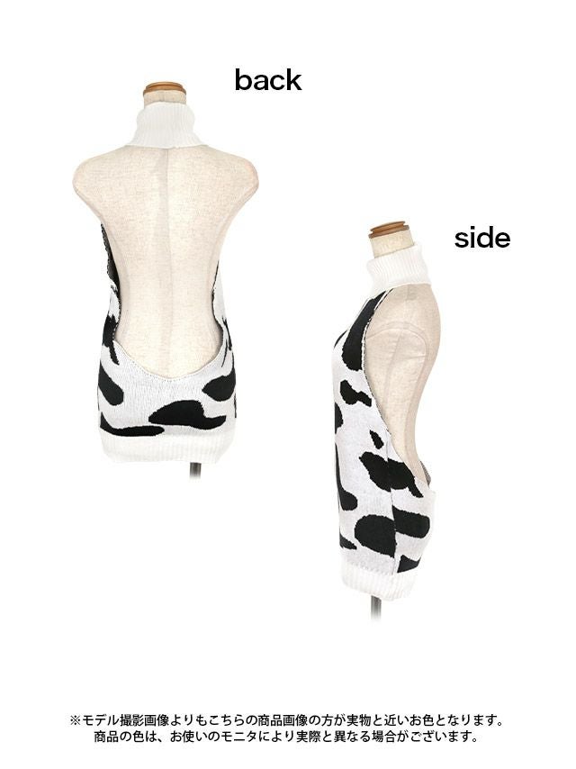 4. [セール]コスプレ 3点set タートルネック牛柄ニットセクシーミニワンピコス [ワンピース+カチューシャ+ニーハイソックス](M)(みゆう着用)