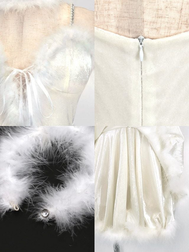 コスプレ ふわふわフェザーバストレースアップ体型カバーフレアスカートガーリー白猫アニマルのディティール