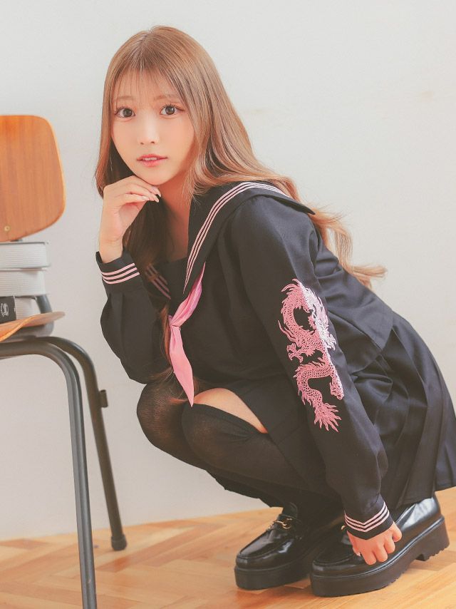 カッコいいドラゴン刺しゅうで目を引くセーラーコスプレ♪