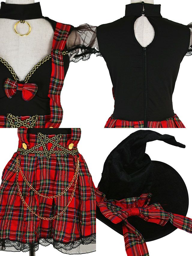 コスプレ チェック柄 美魔女 コスチュームセット ハロウィン ウィッチ ワンピース レディース 衣装 仮装  myMinette マイミネット チェック アメリカン ガーリー フレアスカート インポート 魔女