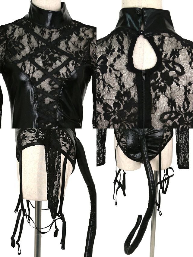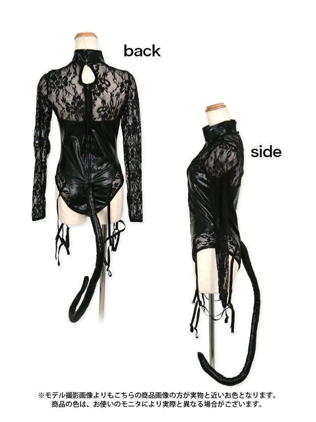 フラワーレースシアー長袖セクシー黒猫インポートアニマル