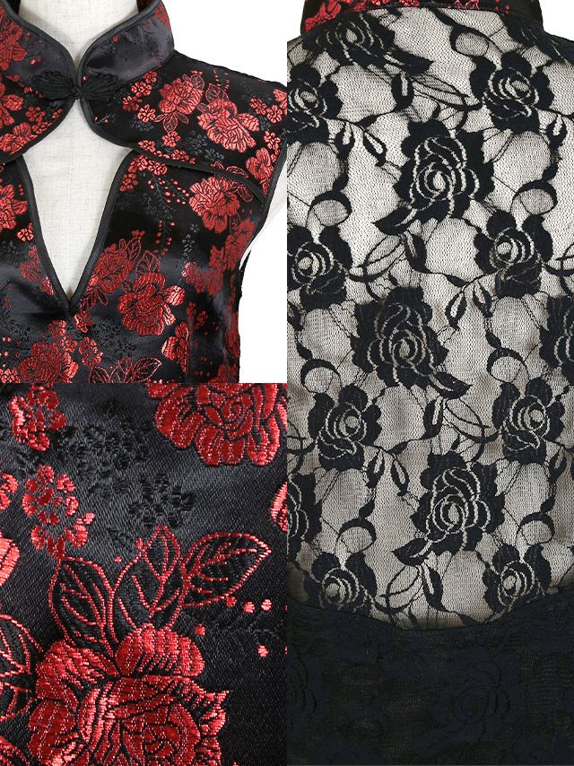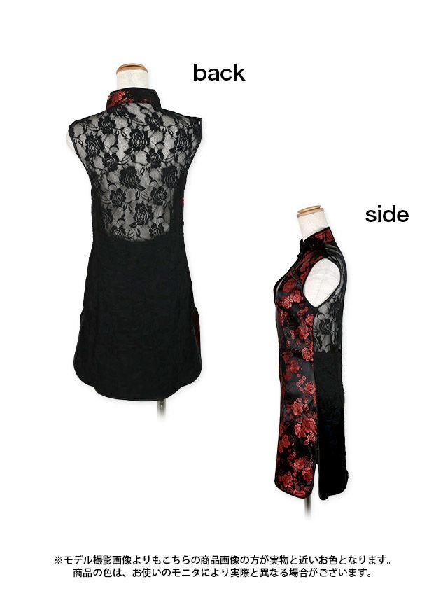 ノースリーブフラワーレースセクシータイトミニチャイナドレス