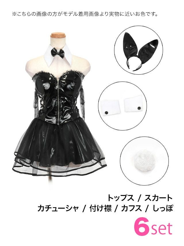 5. [セール]コスプレ エナメルレースアップフロントジップベアトップフレアスカートセクシーペアバニーアニマル [6点セット] (トップス/スカート/カチューシャ/付け襟/カフス/しっぽ)(S~L)