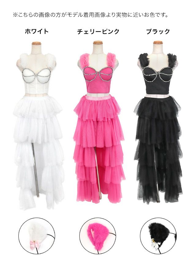 4. [セール]コスプレ へそ出しビスチェゴージャスフィッシュテールチュールフレアスカートセットアップペアセクシー猫アニマル [3点セット] (トップス/スカート/カチューシャ)