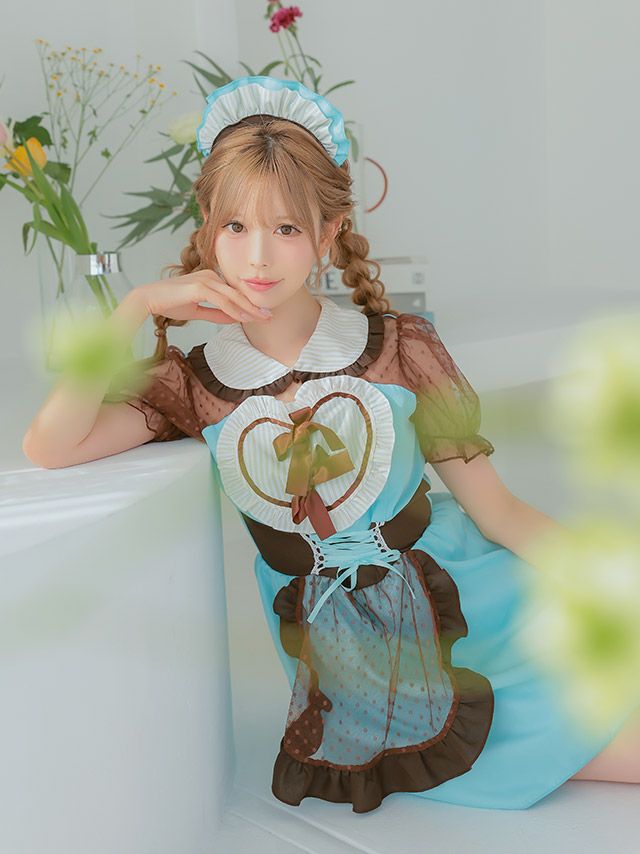 爽やかなミントカラーが目を惹くメイドコスチューム♡