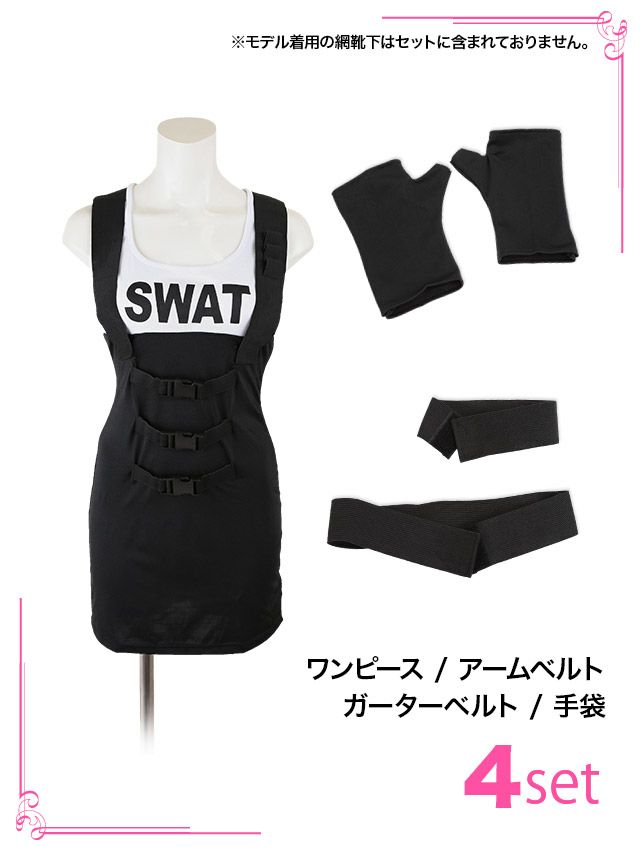4. [セール]コスプレ ジャンバーミニスカ風ツインSWATセクシーポリス [4点セット] (ワンピース/アームベルト/ガーターベルト/手袋)