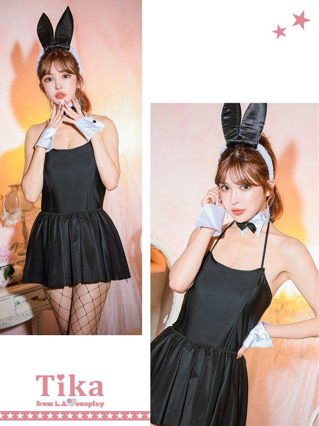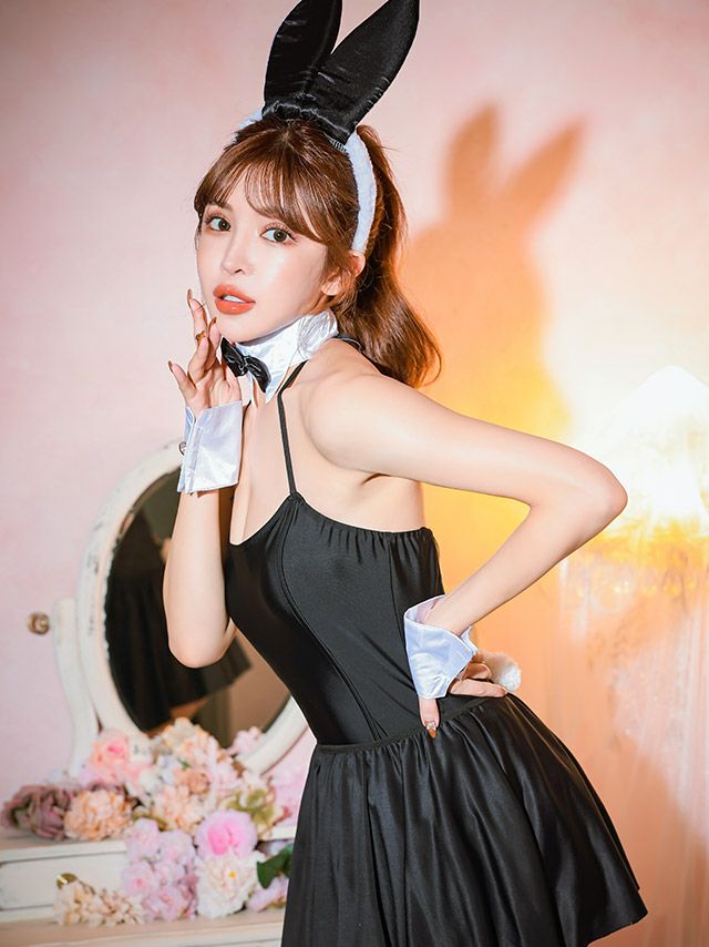ミニフレアスカート付きセクシーホルターネックインポートブラックバニー