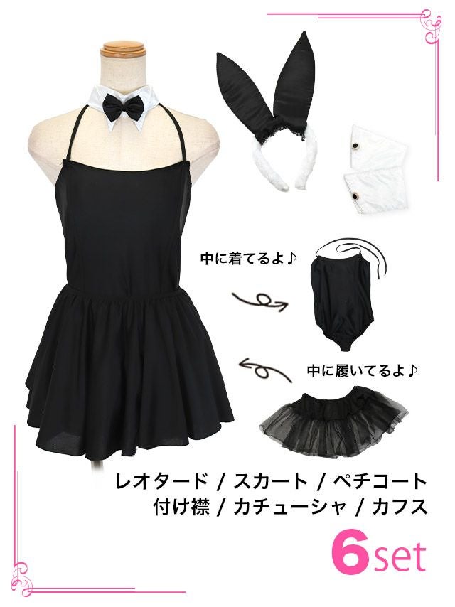 コスプレ ミニフレアスカート付きセクシーインポートブラックバニー [6点セット] (レオタード/スカート/ペチコート/付け襟/カチューシャ/カフス)