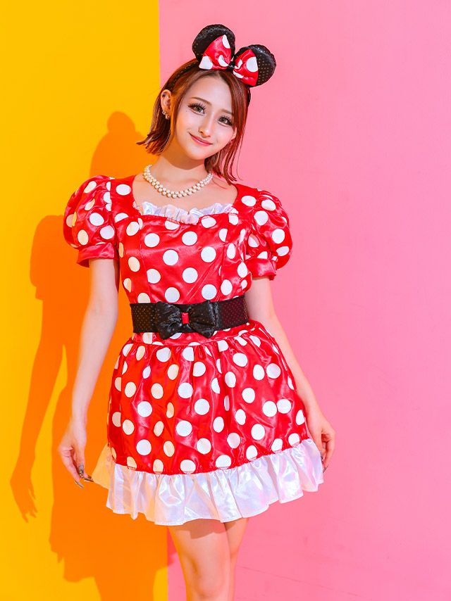 コスプレ 体型カバーフレアスカートミニーマウスペアガーリーディズニーキャラクターのあいみん着用ディティール