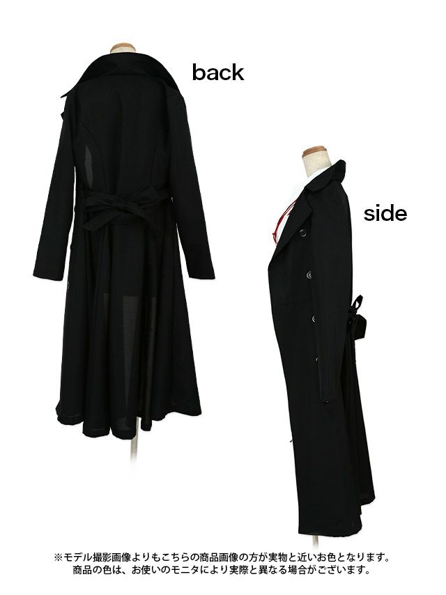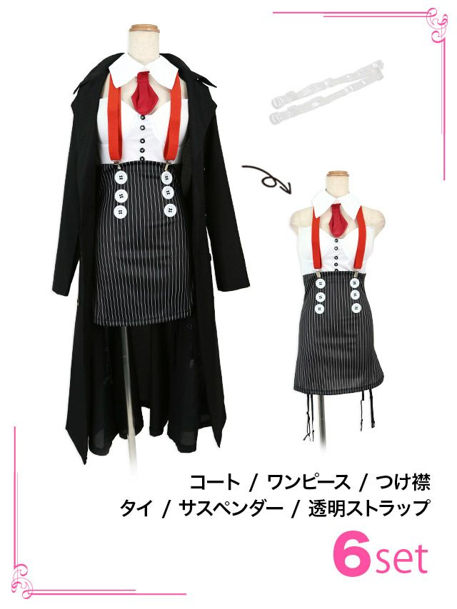 4. コスプレ ギャング袖ありツインマフィアポリス [6点セット] (コート/ワンピース/つけ襟/タイ/サスペンダー/透明ストラップ)
