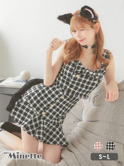 ツイード 千鳥柄 ガーリー 猫 ドレス へそ出し セパレート 裾フリルアニマルの商品画像