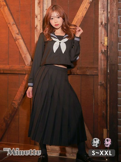 コスプレ スケバン風 袖あり 体型カバー 龍刺繍入り ロング丈 プリーツ セーラー服 のサイズ表