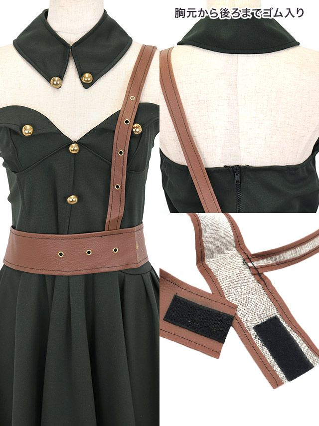 4. コスプレ ベアアーミーガール体型カバーフレアスカートポリス [4点セット] (ワンピース/付け襟/ベルト/帽子)