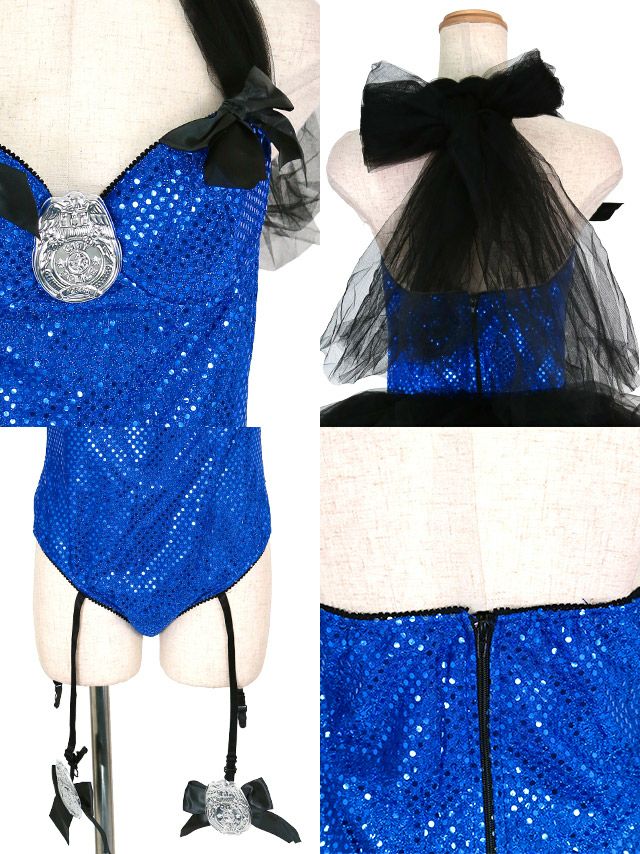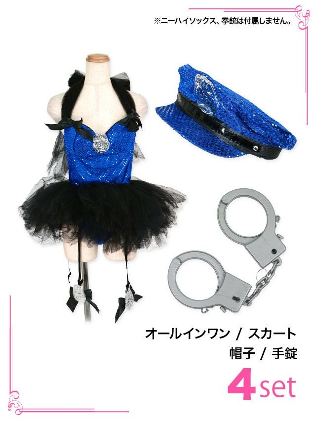 4. コスプレ キラキラスパンコールペアフレアスカートセクシーポリス [4点セット] (オールインワン/スカート/帽子/手錠)