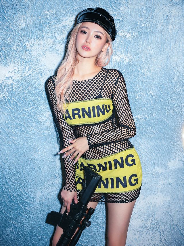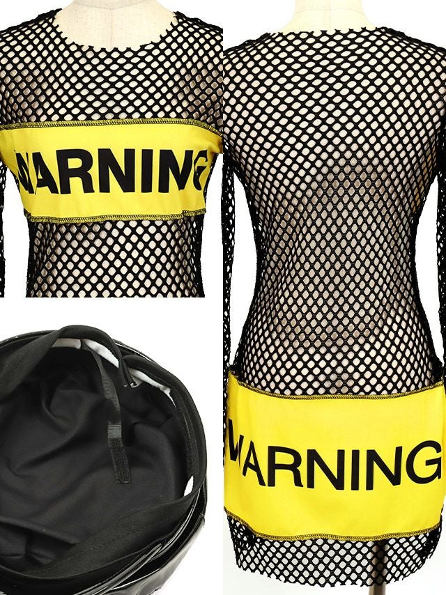4. [セール]コスプレ WARNINGテープデザインメッシュセクシーポリス [2点セット] (ワンピース/帽子)