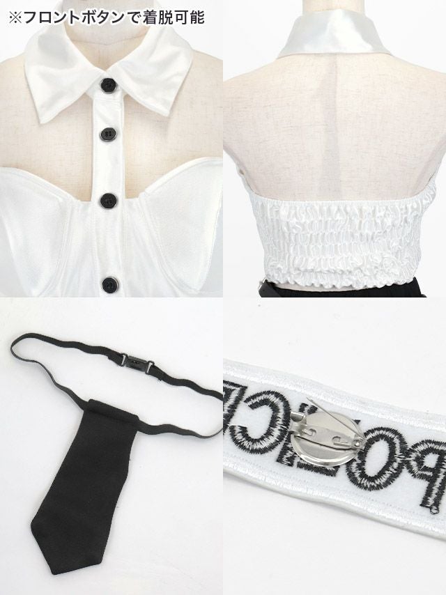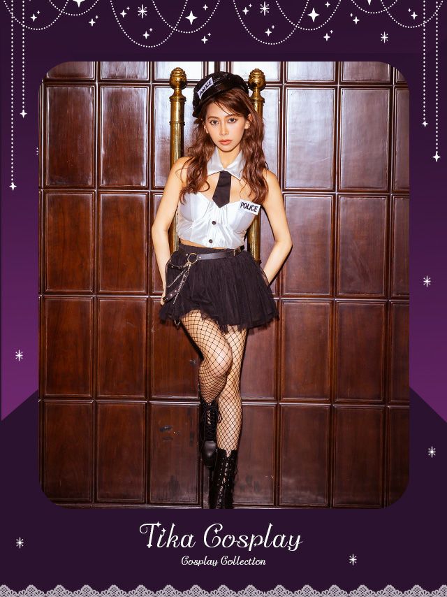 4. コスプレ セクシーへそ出しチュールフレアスカートハートカットビスチェペアポリス [6点セット] (トップス/スカート/ベルト/帽子/ネクタイ/バッジ)