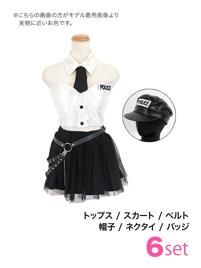 コスプレ セクシーへそ出しチュールフレアスカートハートカットビスチェペアポリス [6点セット] (トップス/スカート/ベルト/帽子/ネクタイ/バッジ)