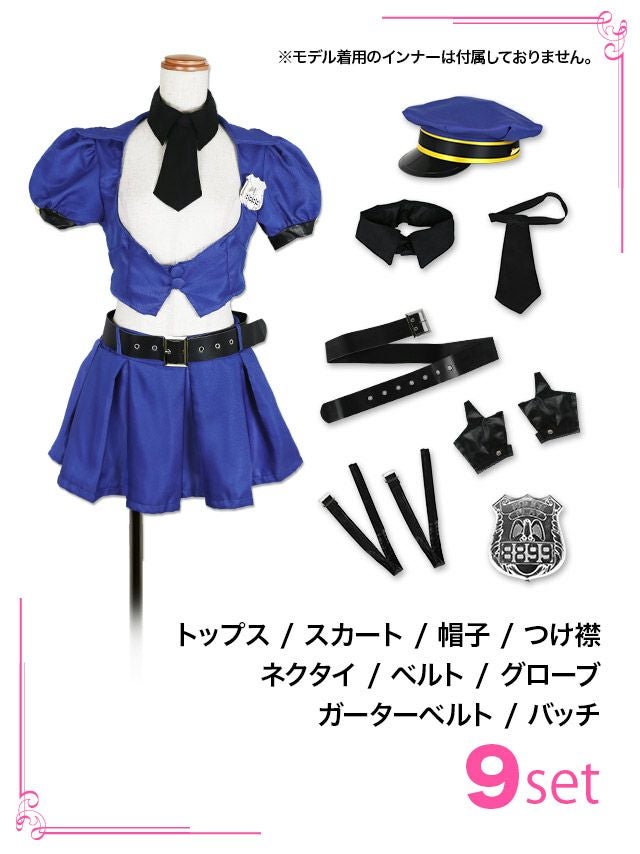 5. コスプレ セクシー体型カバープリーツフレアスカートペアへそ出しプチプラポリスガール [9点セット] (トップス/スカート/帽子/つけ襟/ネクタイ/ベルト/グローブ/ガーターベルト/バッチ)