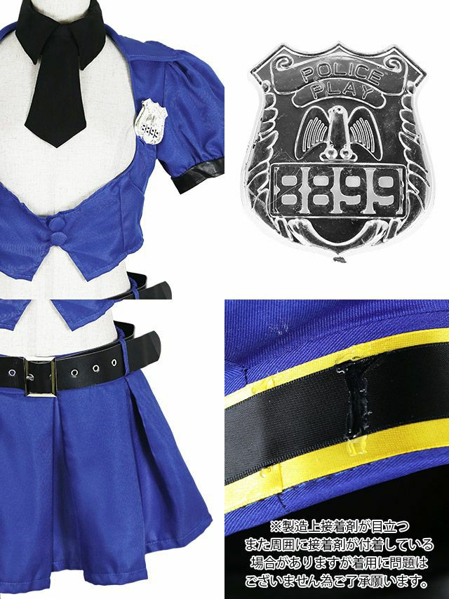 4. コスプレ セクシー体型カバープリーツフレアスカートペアへそ出しプチプラポリスガール [9点セット] (トップス/スカート/帽子/つけ襟/ネクタイ/ベルト/グローブ/ガーターベルト/バッチ)