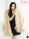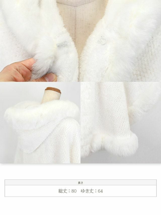 [アウトレット] フードもこもこフェイクファーデザイン大判ケープショール (せいせい/羽織り着用)