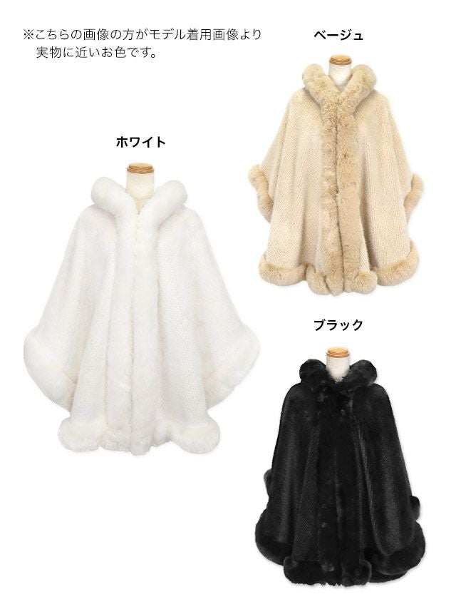 5. [アウトレット] フードもこもこフェイクファーデザイン大判ケープショール (せいせい/羽織り着用)