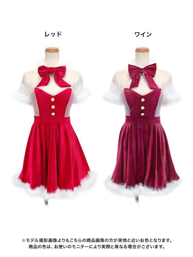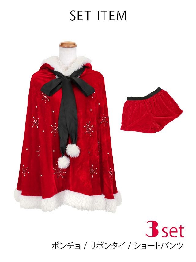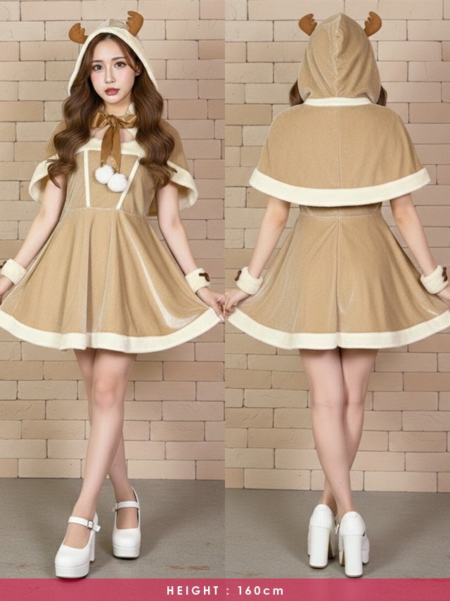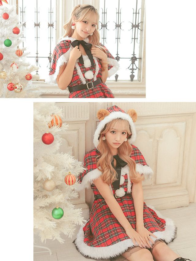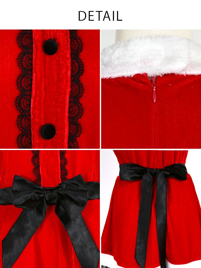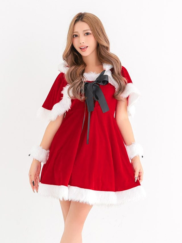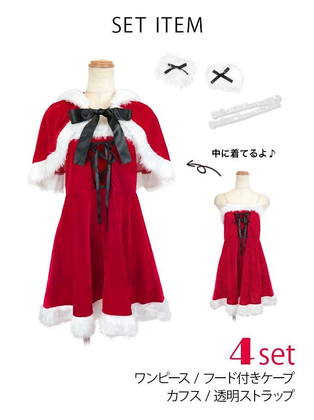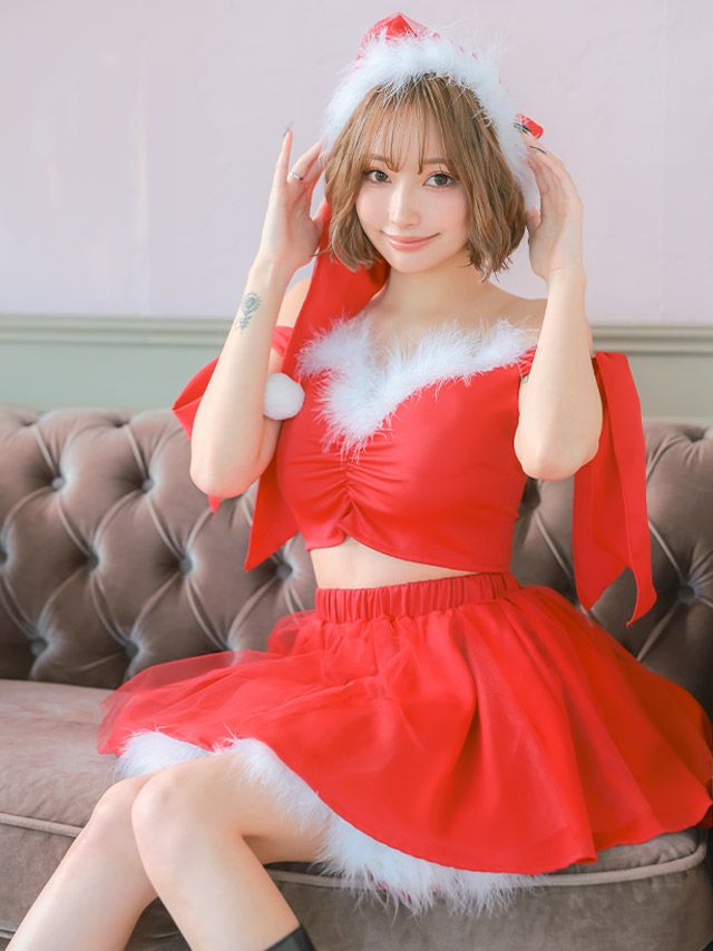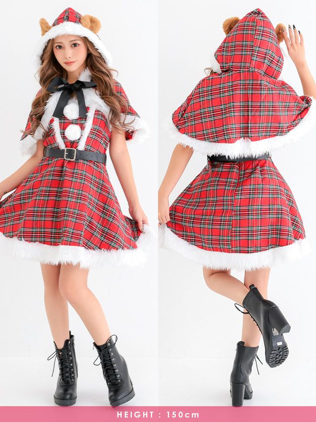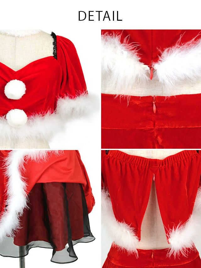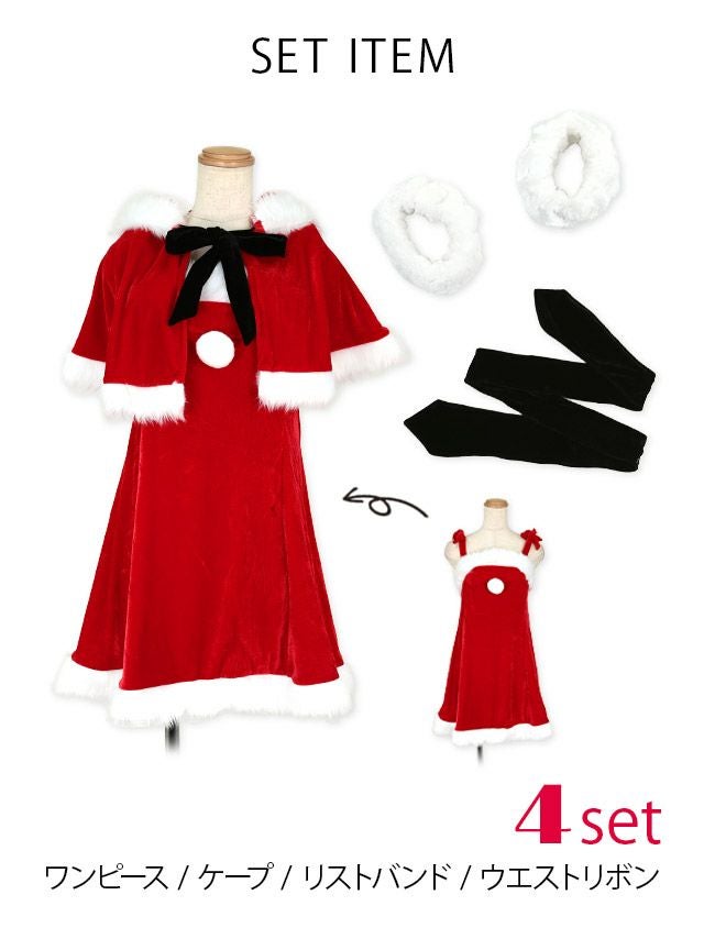 サンタ&トナカイ サンタコス セットアップ ねこ耳ケープ フレア ふわふわ トナカイ オフショル コスプレ