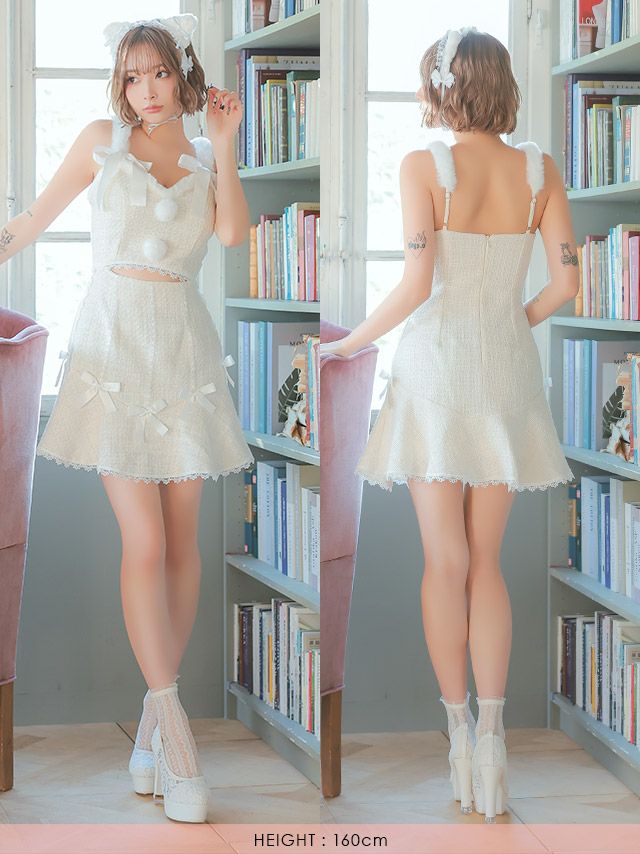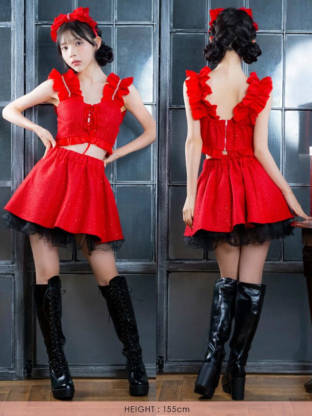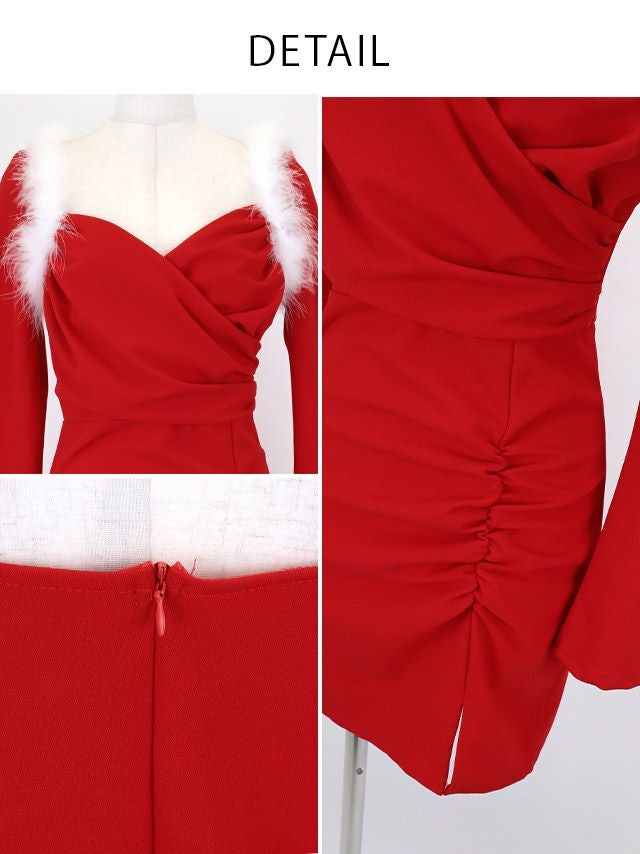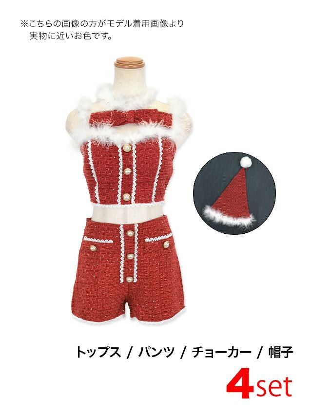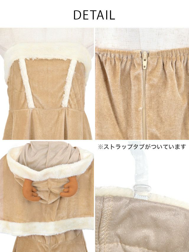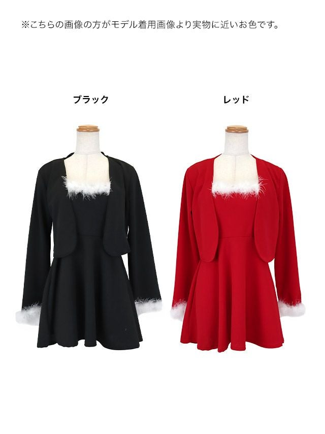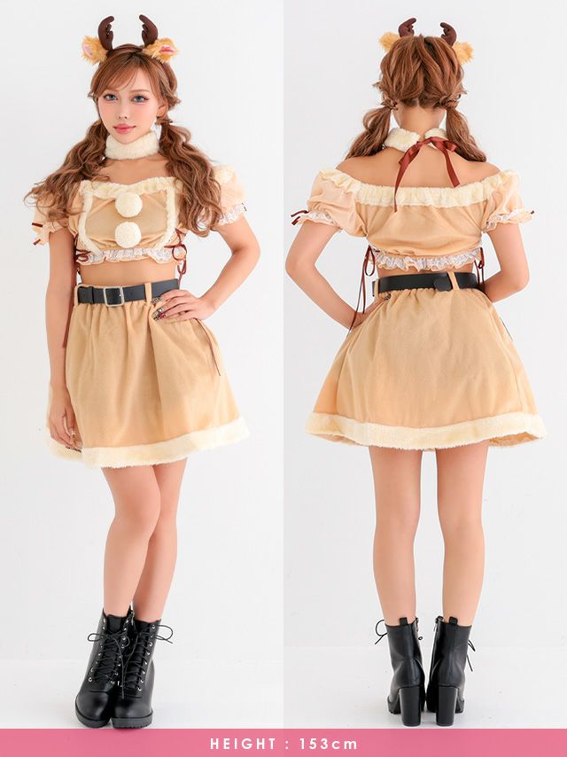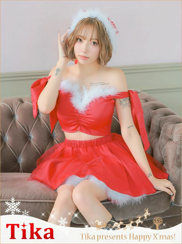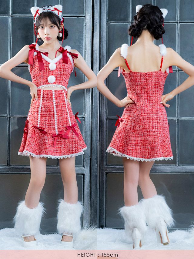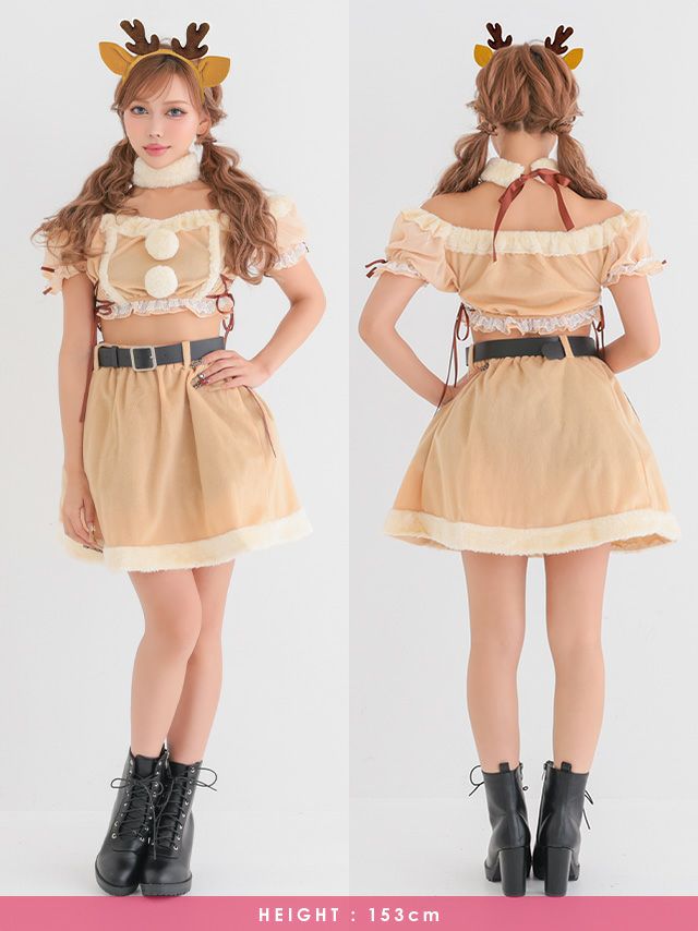 サンタ&トナカイ サンタコス セットアップ ねこ耳ケープ フレア ふわふわ トナカイ オフショル コスプレ