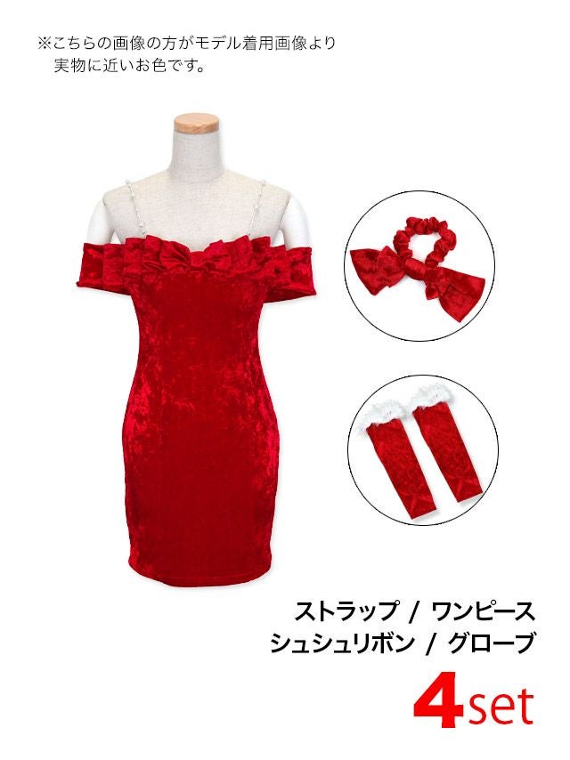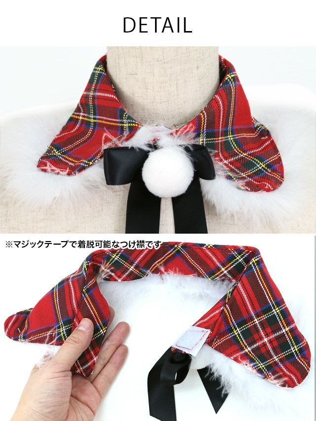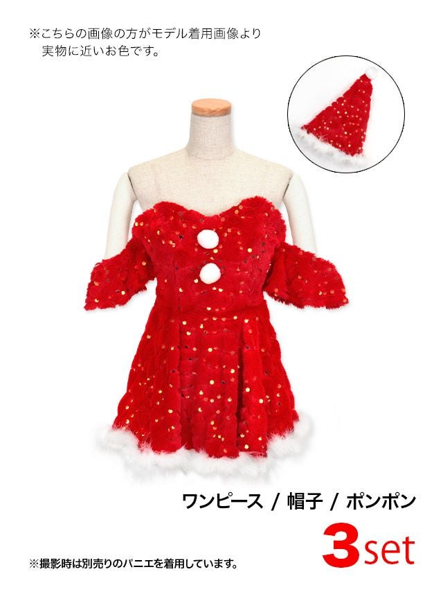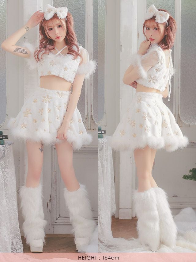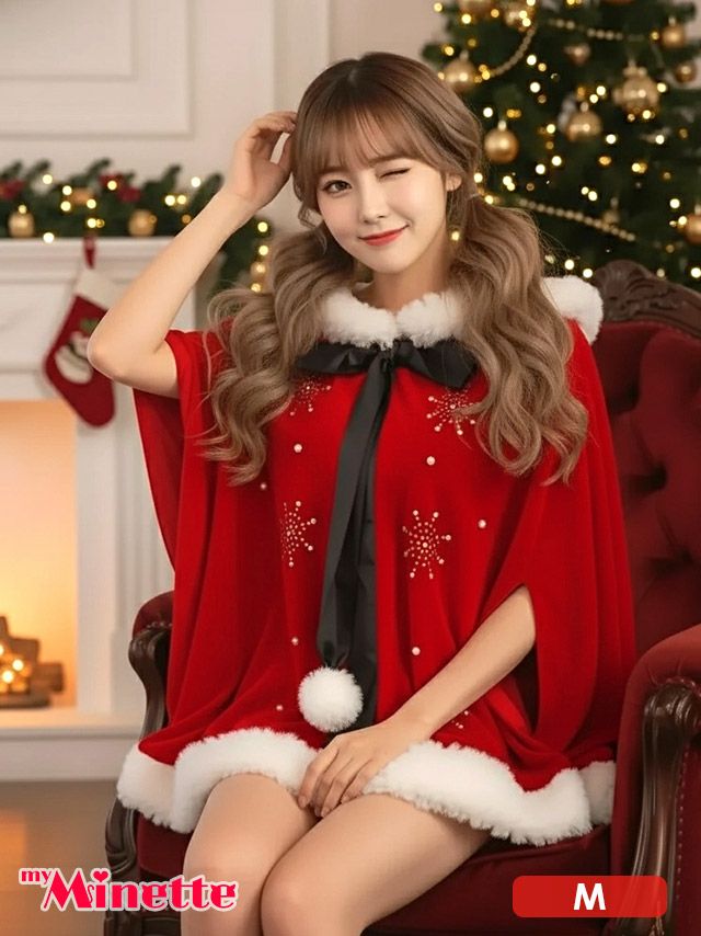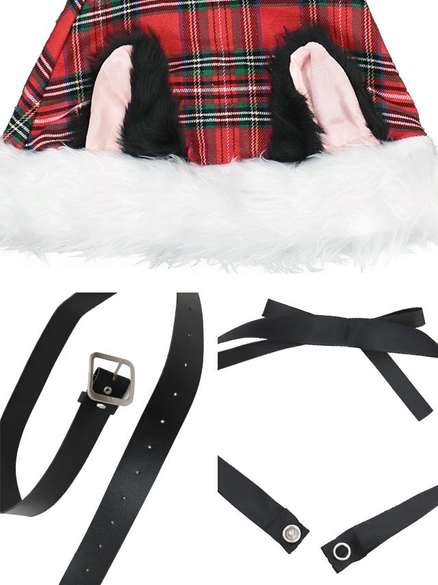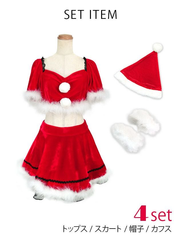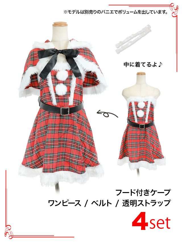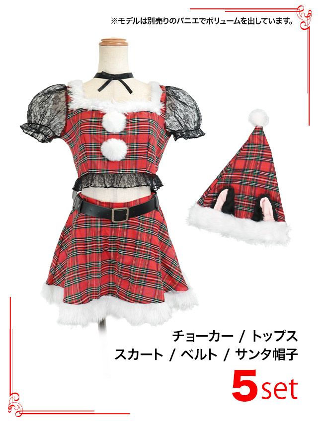 [新作]サンタコス 7点set ふわふわ トナカイ オフショル セットアップ ねこ耳ケープ フレア コスプレ [カチューシャ+付け襟+トップス+透明ストラップ+スカート+ベルト+ガーターリング]