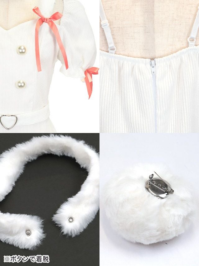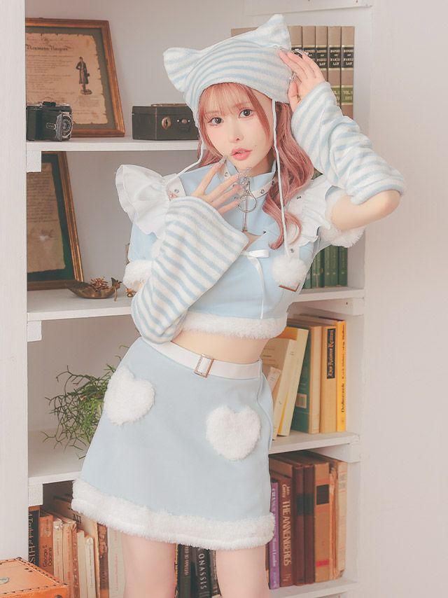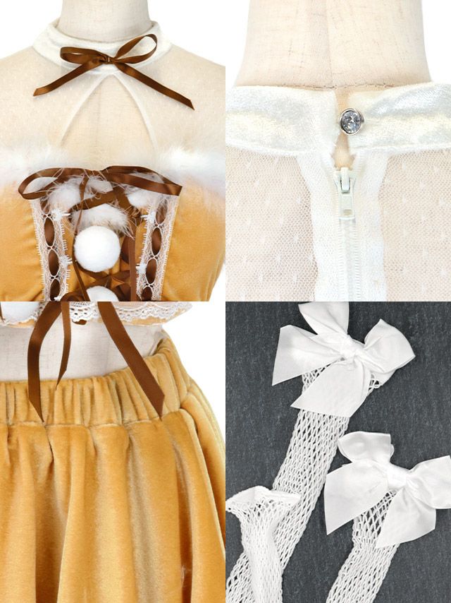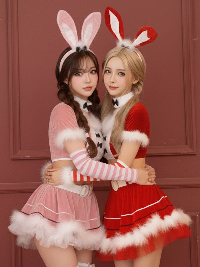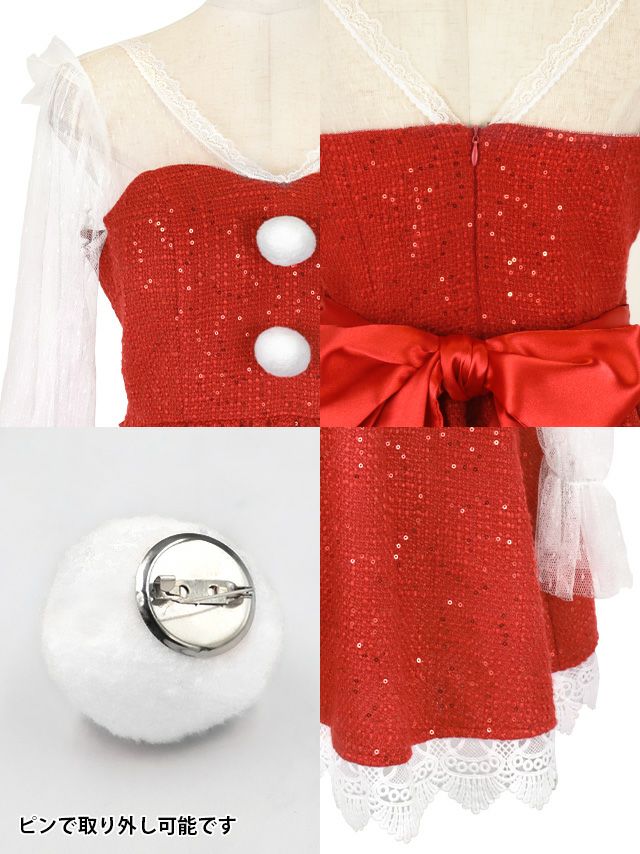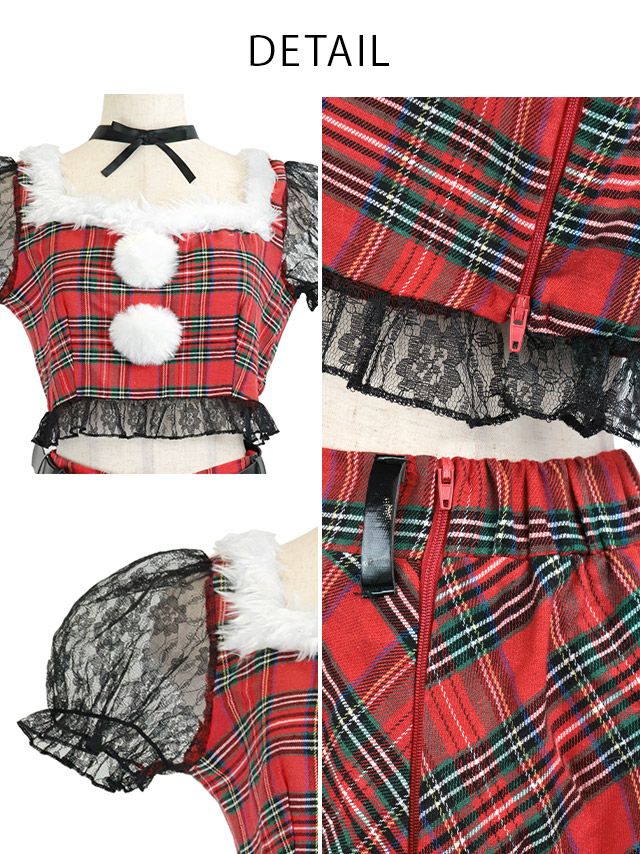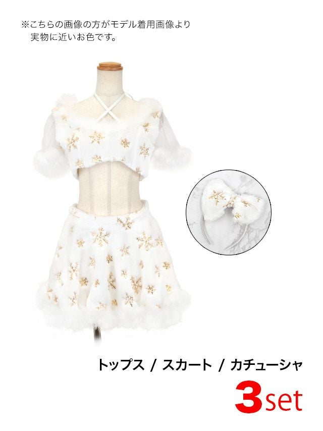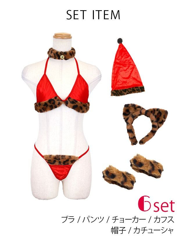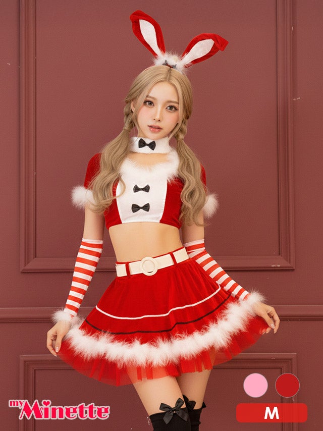 [新作]サンタコス 7点set ふわふわ トナカイ オフショル セットアップ ねこ耳ケープ フレア コスプレ [カチューシャ+付け襟+トップス+透明ストラップ+スカート+ベルト+ガーターリング]
