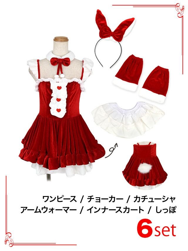 サンタコス 6点set しっぽ付きハート×リボンバニーサンタコスプレ