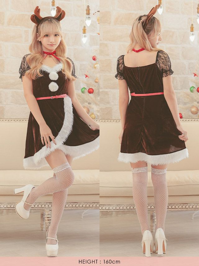サンタコス 5点set まやりん着用2wayレーススリーブラップフレアトナカイアニマルサンタコスプレ