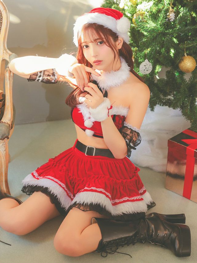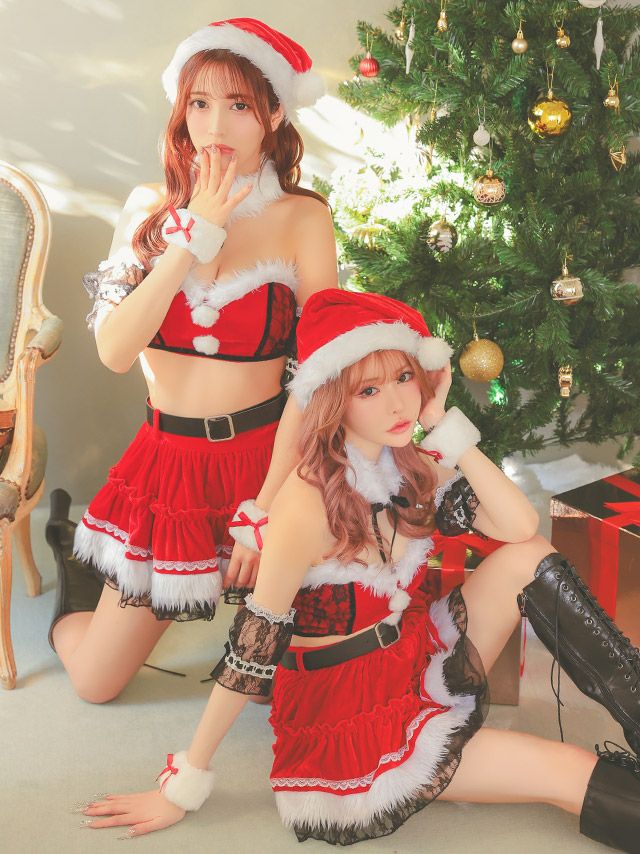 お腹を大胆に見せるセクシーなデザインが魅力的なサンタコスチューム♡