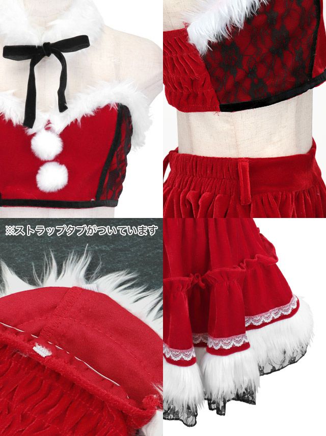 仮装 変装 コスチューム クリスマス  myMinette マイミネット サンタコス 7点set オフショル セパレート へそ出し ボリューム フリル フレアスカート サンタ コスプレ