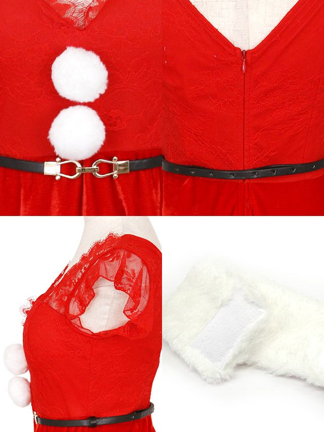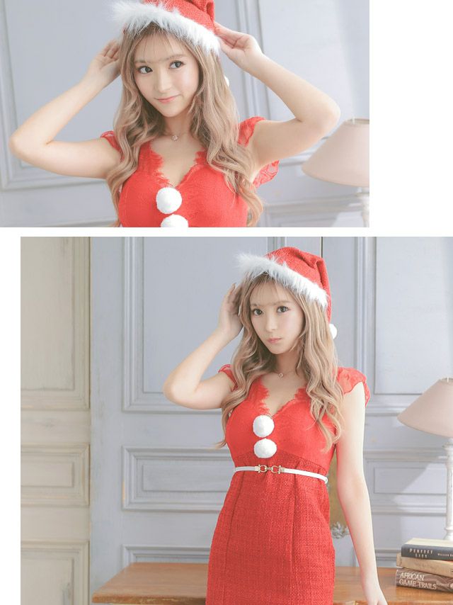 5. サンタコス レースショルダー選べる サンタ コスプレ(S~XL) (聖菜,りせり着用)