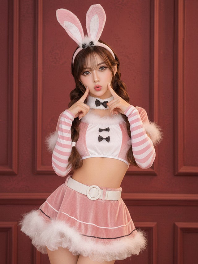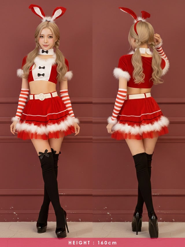 5. [再入荷]サンタコス 7点set ふわふわサンタバニーガール サンタ コスプレ [トップス+スカート+チョーカー+ベルト+カチューシャ+アームカバー+Tバック]
