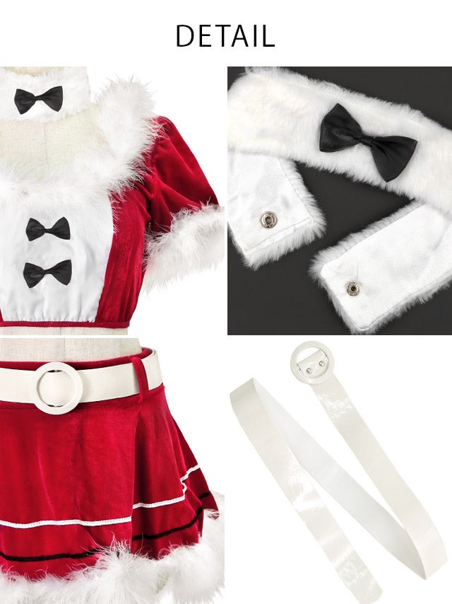 3. [再入荷]サンタコス 7点set ふわふわサンタバニーガール サンタ コスプレ [トップス+スカート+チョーカー+ベルト+カチューシャ+アームカバー+Tバック]