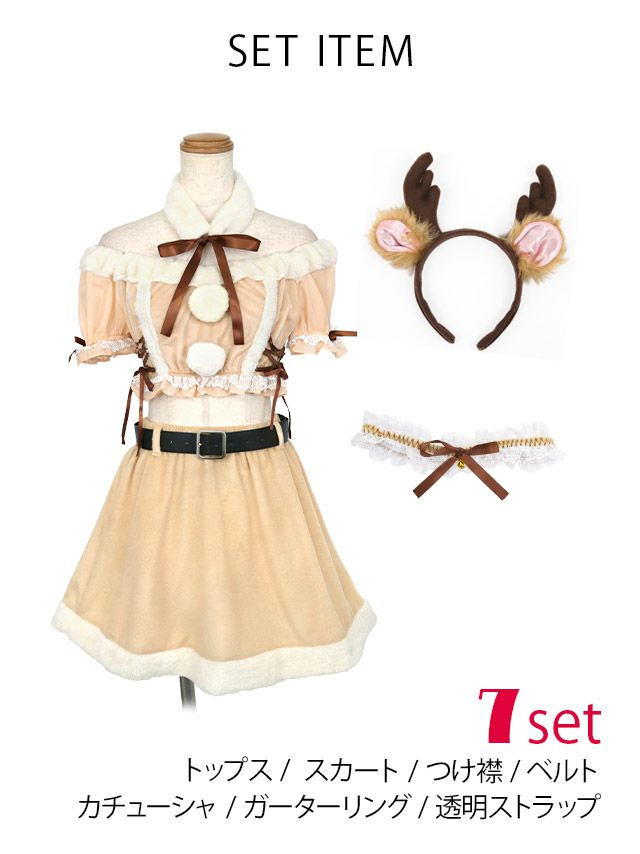 サンタコス 7点set ふわふわ トナカイ オフショル フレア セットアップ コスプレ のセット内容
