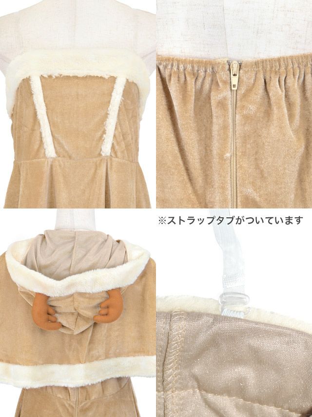 3. [再入荷]サンタコス 4点set ベアトップミニワンピ&ツノ付きケープふわふわボアトナカイアニマル サンタ コスプレ [フード付きケープ+ワンピース+カフス+透明ストラップ]