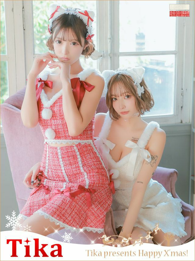 ガーリーでラブリーな女の子らしさ全開の猫サンタコスプレ♡
