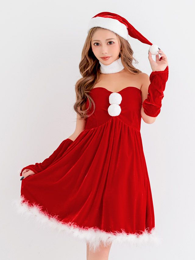 仮装 変装 コスチューム クリスマス myMinette マイミネット サンタコス 5点set ベロア サンタ ベアトップ コスプレ ふわふわフェザー
