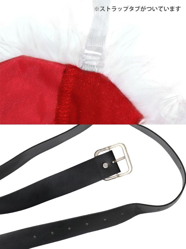 サンタコス 4点set 肩出し2WayオフショルダーキラキラAラインベロア サンタ コスプレ [帽子+ワンピース+透明ストラップ+ベルト]