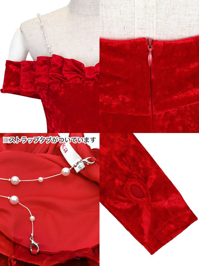 サンタコス 3点set ベロアパールキャミバストリボンオフショルペアタイトドレスサンタコスプレのディティール